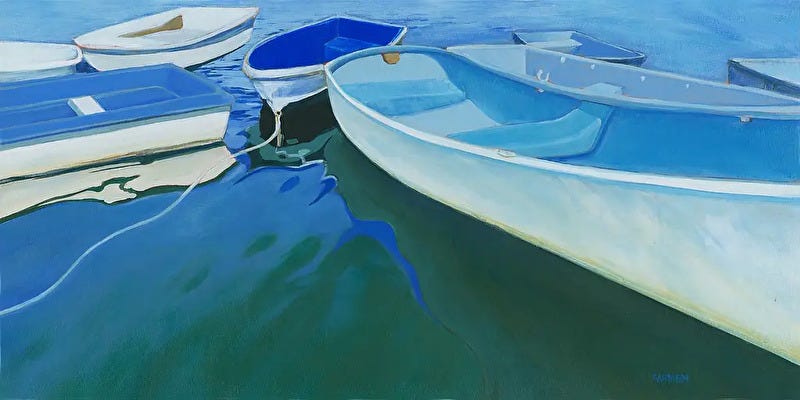 Presently, Carmen is exploring non-traditional compositions and vantage points using her Maine boat series.