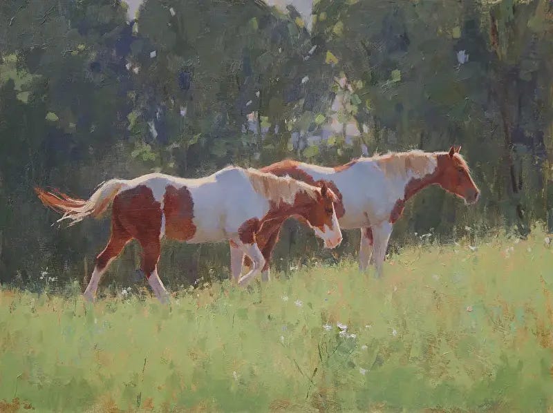 I am more interested in light, shapes, movement and design rather than in any particular subject, striving to capture the poetry of a unique moment in time. Horses have always had a calming effect on me and that feeling is what I try to portray in my equine paintings. In a world that can often be stressful, I hope my paintings evoke a sense of tranquility and beauty.