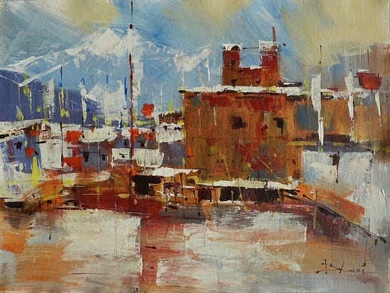 "I am overwhelmed by the beauty of nature, in particular the atmosphere of an environment. Atmosphere is revealed by how the light strikes objects, both natural and manmade. I particularly enjoy the mood of skies and expansive views. Inspiration can arrive anywhere, from a bustling street in Manhattan to an isolated marsh. It's the "feeling" of the place that inspires me, and I hope to translate. When painting a scene, I don't have specific rules for myself. I prefer to let a scene and my feelings for it, set my approach. Palette knives, brushes, household items and hardware store finds have all been used in moving paint onto and around my canvases. I see each painting as an experiment that is unfolding. My initial goal can be interrupted by a new idea during the process, and I'm okay with taking a different path and veering from what might have been comfortable. Of course, there are risks with this, the fear of "failure", and quite possibly a painting that needs to be wiped off...yet that's okay with me. It's the safe paintings that I find less exciting. The truly moving pieces are the ones that I pushed a bit. There are stories to tell. I strive to get my paintings to a point to which I "feel" the place I have painted, and hope others do as well. My hope is that others see and feel the stories I'm telling."