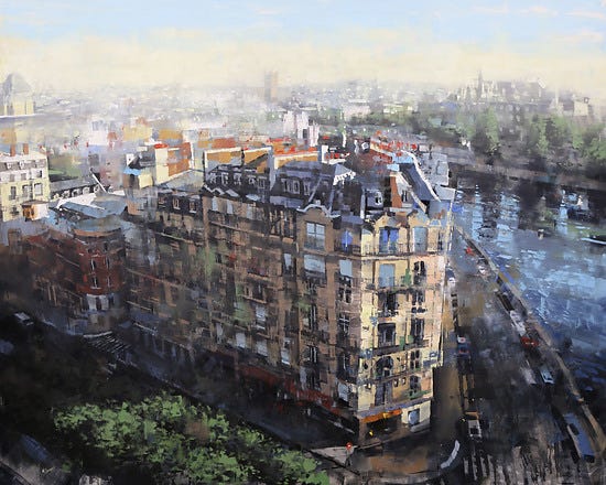 My paintings are a dichotomy of faces and places. They reflect the energy and emotions I feel when I see a compelling scene and capture the person or place with color, textures, and patterns. I'm inspired by people and their activities, and am also inspired by places, especially water, and especially when visiting a new place for the first time. I like to use thick paint and often use a palette knife when applying color in oil. When painting in acrylic, I use many layers.